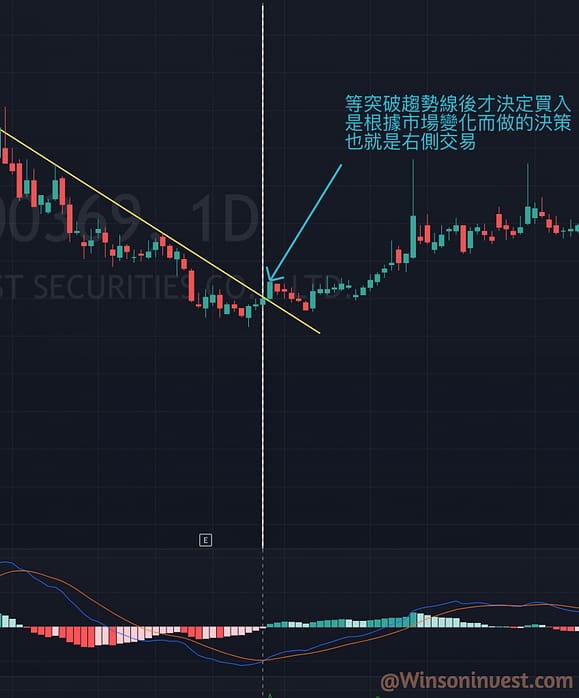而所謂對策,就是指右側交易,即不對市場進行預測,只等市場行情出來後才決定如何去操作。以對策方式操作,成功率將會提高,但同時利潤也會減少,因為很可能等走出行情時價格已太高了。
